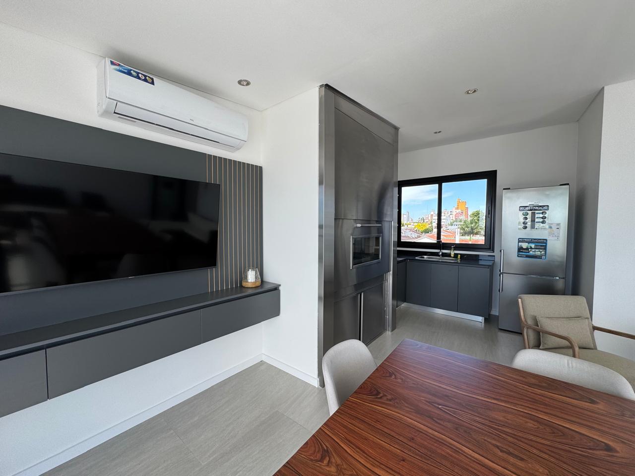 🛏️🛁 Este luminoso y moderno departamento ofrece 2 dormitorios en suite y un toilette, ideal para quienes buscan comodidad y estilo. Cuenta con un amplio living-comedor y una cocina separada equipada con anafe y horno eléctrico, además de aire acondicionado en todos los ambientes para garantizar confort en cada estación del año.